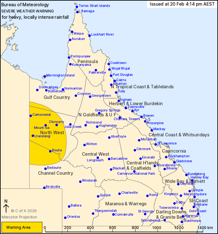 Locations which may be affected include Mount Isa, Cloncurry,