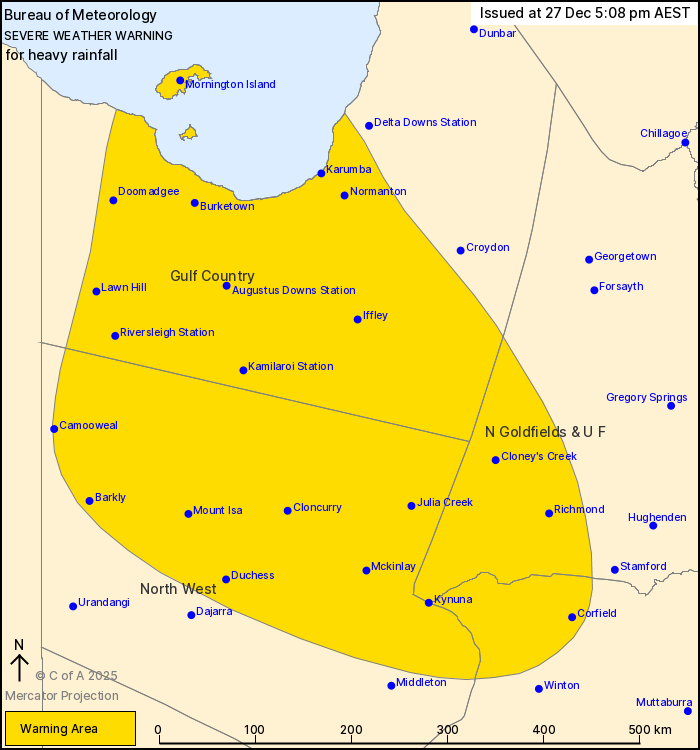 For people in parts of Gulf Country, Northern Goldfields and Upper Flinders, North West and Central West Forecast Districts.