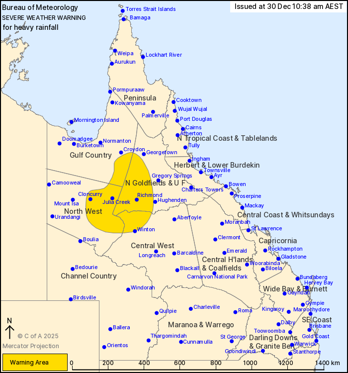 Locations which may be affected include Cloncurry, Richmond, Julia