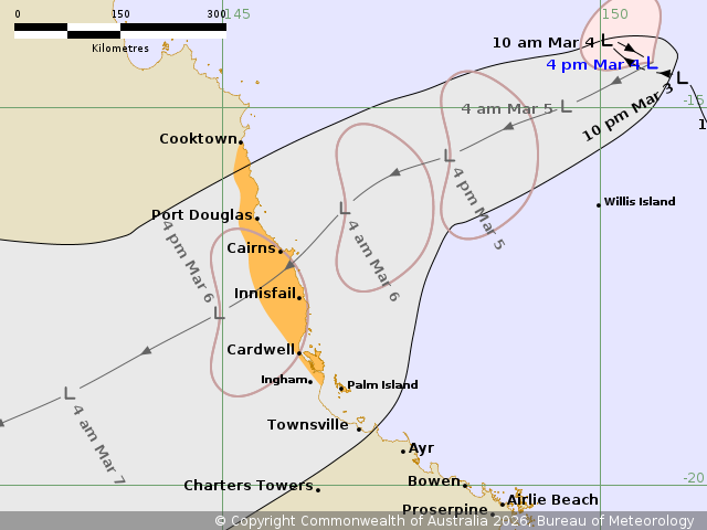 East, estimated to be 600 kilometres east northeast of Cairns and