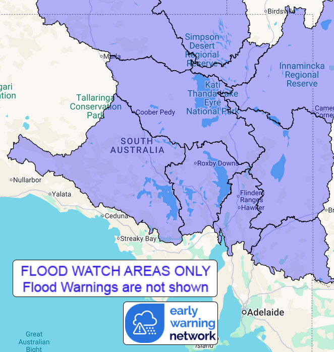 Flood Watch area. Many bitumen and dirt outback roads are currently