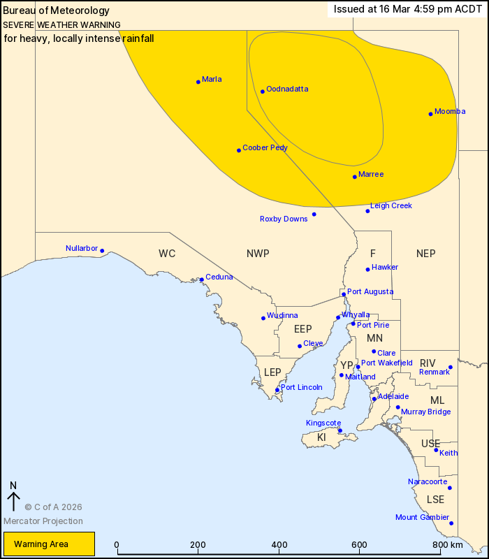 POSSIBLE, MORE LIKELY NORTH OF MARREE.