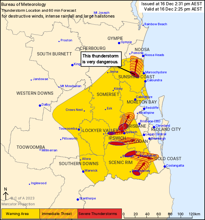 The Bureau of Meteorology warns that, at 2:25 pm, a VERY DANGEROUS