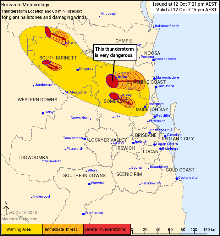 The Bureau of Meteorology warns that, at 7:15 pm, a VERY DANGEROUS