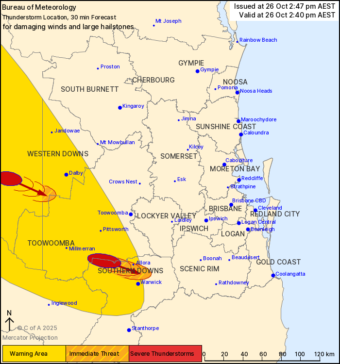 The Bureau of Meteorology warns that, at 2:40 pm, severe