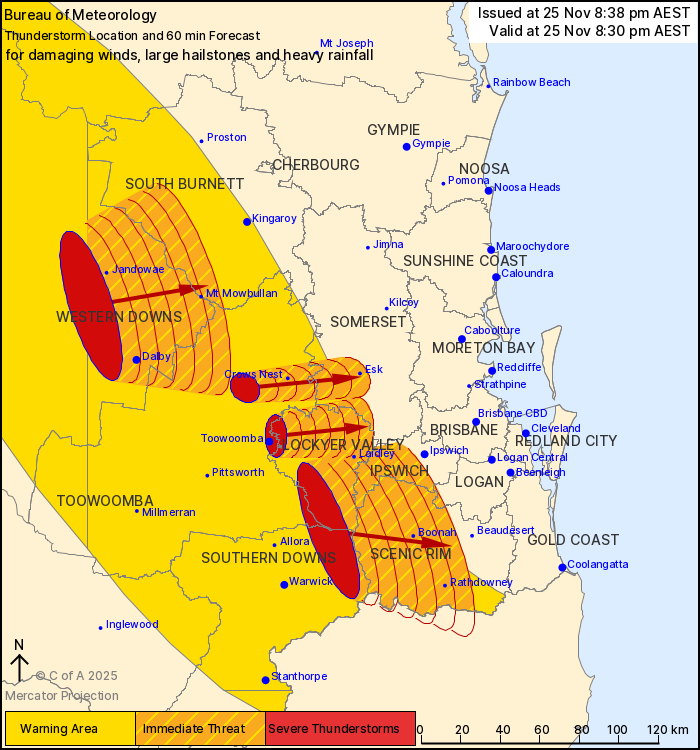 The Bureau of Meteorology warns that, at 8:30 pm, severe
