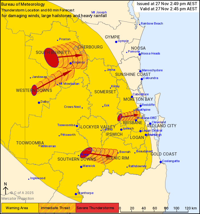Severe thunderstorms approaching Brisbane