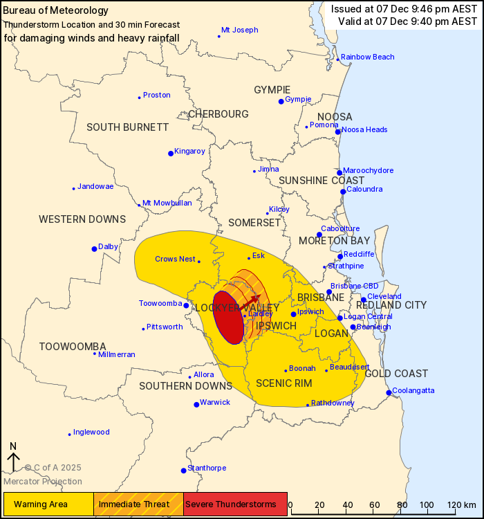 The Bureau of Meteorology warns that, at 9:40 pm, a severe