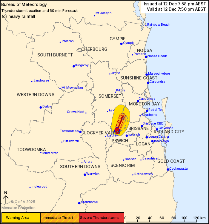 The Bureau of Meteorology warns that, at 7:50 pm, a severe