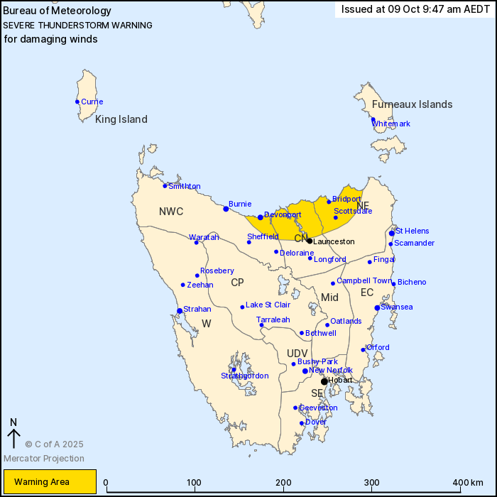 113 km/h wind gust was observed at Devonport at 9:16am.