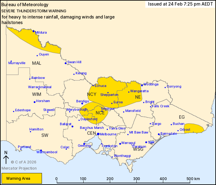 may be affected include Mildura, Shepparton, Wangaratta, Echuca,