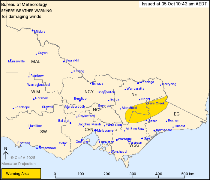 Locations which may be affected include Falls Creek, Mt Hotham, Mt