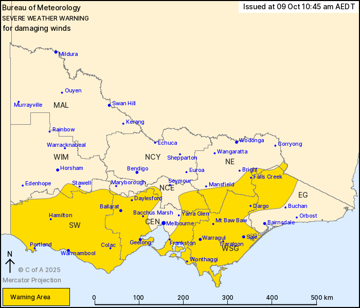 and ELEVATED PARTS OF VICTORIA: DAMAGING WINDS averaging 60 to 70