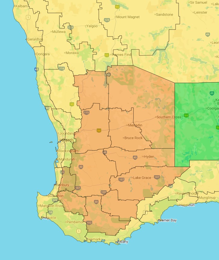 for the Karroun, Lockwood, Mortlock, Avon, Brockman, Blackwood, Roe, Arthur, Lakes, Stirling North and Stirling West fire weather districts
