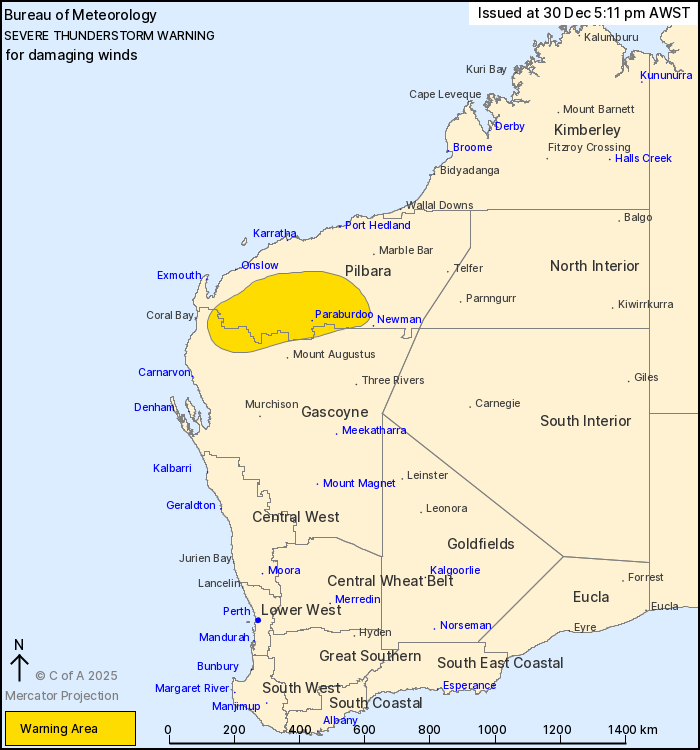 affected include Paraburdoo, Tom Price and Nanutarra.