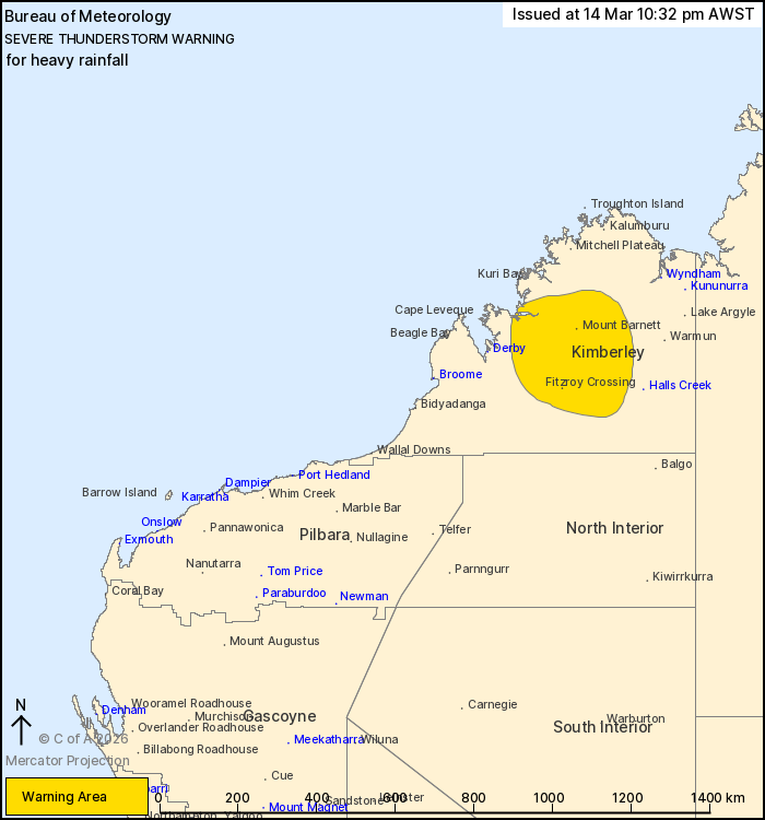 Severe thunderstorms are likely to produce heavy rainfall that may lead to flash flooding in the warning area over the next several hours. Locations which may be affected include Fitzroy Crossing and Mount Barnett.