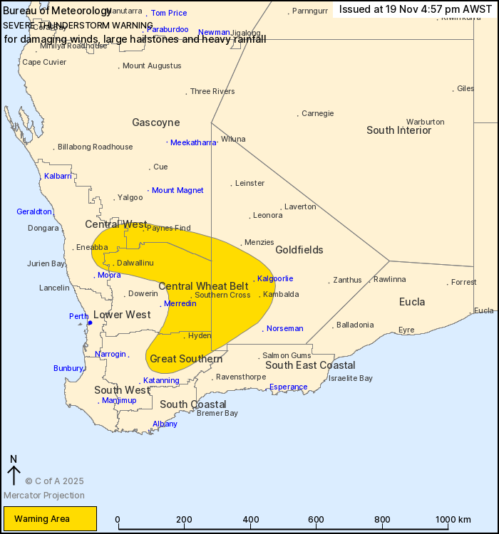 be affected include Kalgoorlie, Dalwallinu, Hyden, Paynes Find,