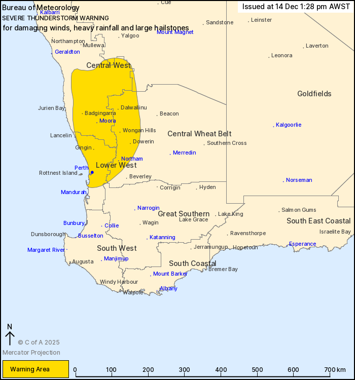 be affected include Moora, Northam, Perth, Dalwallinu, Dowerin and