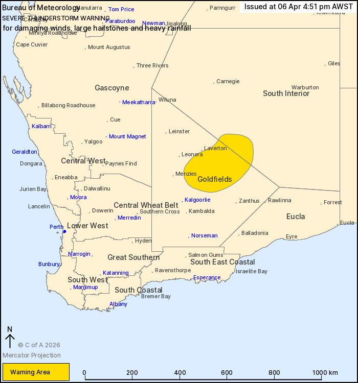 Severe thunderstorms developing over parts of the Goldfields and