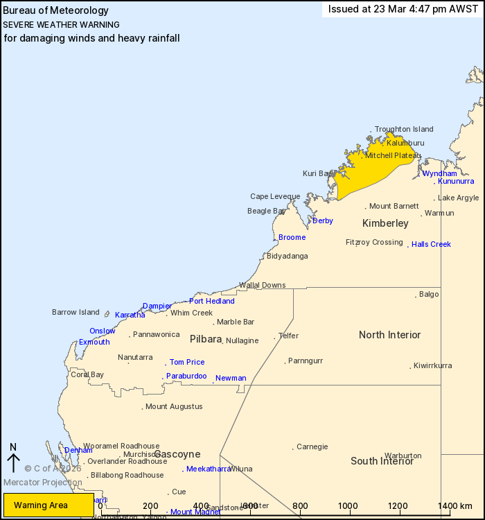 Pilbara Coasts. A Flood Watch is also current for the area. Please